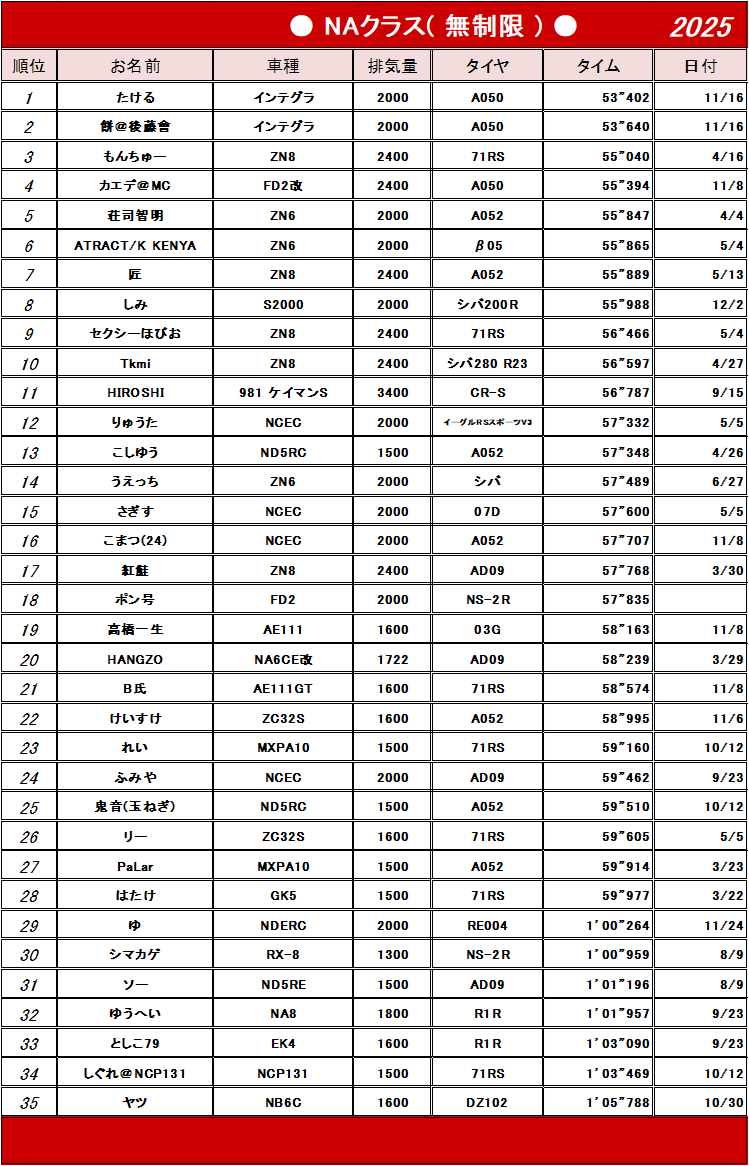 | NAクラス(無制限) |