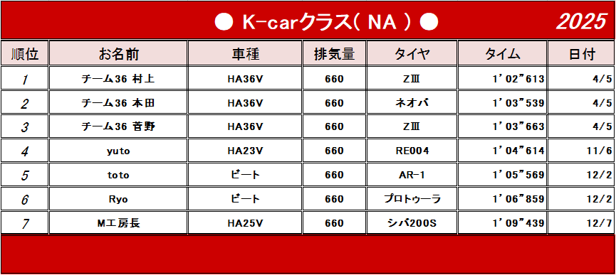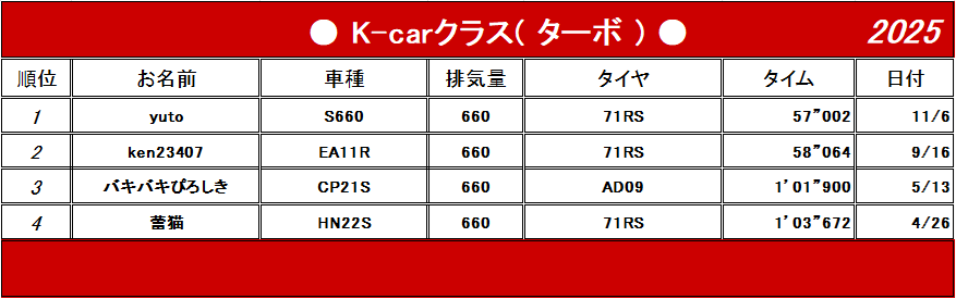 | K−carクラス(660cc以下) |