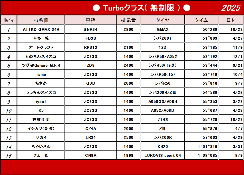 | Turboクラス(無制限) |